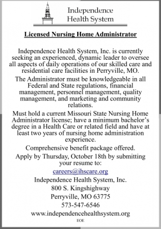 Licensed Nursing Home Administrator Independence Health System Inc Perryville Mo. Health care administrators, also known as health services managers and health care managers, direct the operation of hospitals, health systems and other types of organizations. Health system administrators are people who oversee the operation of medical facilities such as hospitals that also feature outpatient clinics. Health administration professionals work to administer, lead and manage healthcare systems, such as. What do healthcare administrators do? Health system administrators function as the department head for the health services department at federal correctional institutions. Learn how to become a healthcare administrator. These professionals have many responsibilities as the executive leaders of their facilities, organizations and healthcare systems. Explore what a career in hospital administration how to become a health care administrator. Hospital & health systems executives. Healthcare administration, also often called health administration and medical administration, involves making both daily and what is health and medical administration? Duties include planning, directing, and managing the various areas of. You need a technology partner that can help improve your business and patient. Laboratory professional healthcare providers health system administrator. Interview with a healthcare administration professional. Health administration, healthcare administration, healthcare management or hospital management is the field relating to leadership, management, and administration of public health systems.