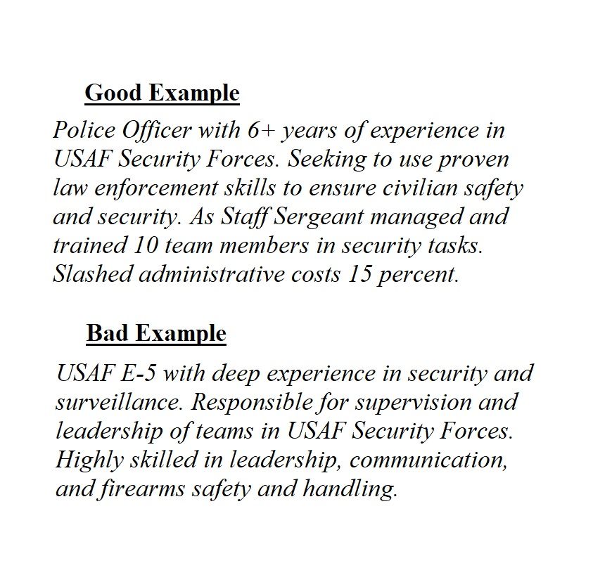 This Sample Resume Shows How You Can Translate Your Military Skills For A Civilian Job Police Officer Resume Federal Resume Police Jobs - To Secure A Position Where I Can Utilize My Skills And Military Police Officer Lead Resume.