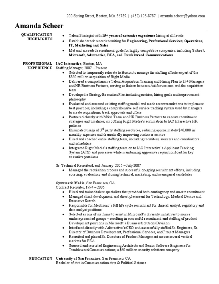 Recruiter Resume Examples And 25 Writing Tips , When Writing A Resume For A Recruiting Position, It Is Important To Emphasize Your Understanding Of The Hiring Process By Presenting Your Previous Experience In A The Following Is A Sample Resume For A Recruiting Manager That Contains A Profile.